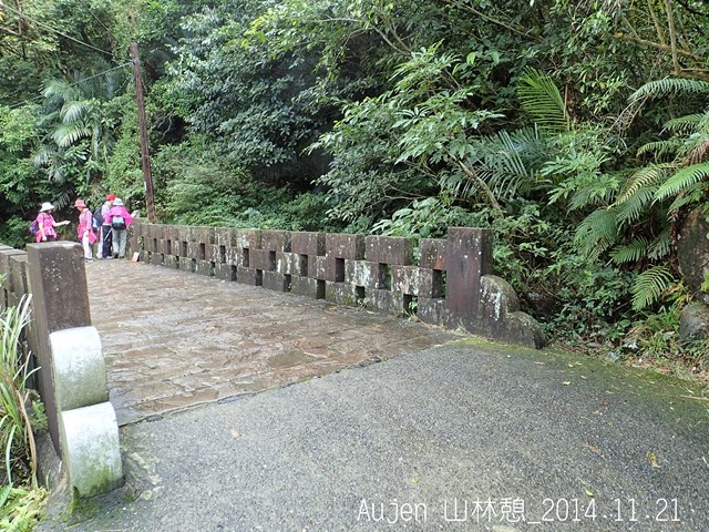 草嶺古道北口,續循溪邊石階步道往上。不是假日芒花季日還有少數遊客。H106m